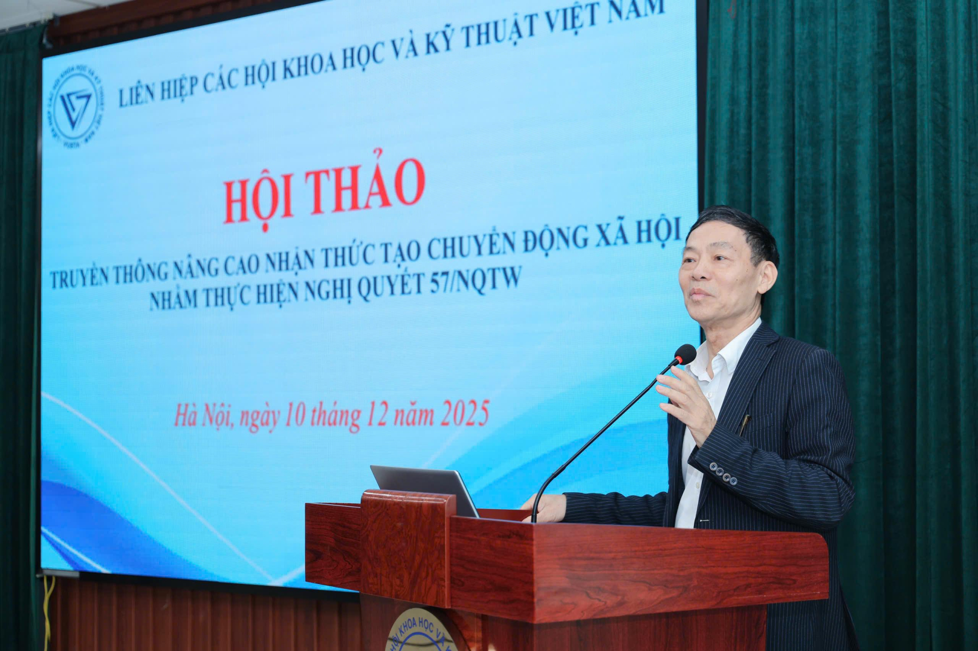 Phát biểu khai mạc tại Hội thảo, PGS.TS Phạm Ngọc Linh - Phó Chủ tịch Liên hiệp các Hội Khoa học và Kỹ thuật Việt Nam (Liên hiệp Hội Việt Nam) cho biết, Bộ Chính trị xác định nâng cao nhận thức, đột phá về đổi mới tư duy, xác định quyết tâm chính trị mạnh mẽ, quyết liệt lãnh đạo, chỉ đạo, tạo xung lực mới, khí thế mới trong toàn xã hội về phát triển khoa học, công nghệ, đổi mới sáng tạo và chuyển đổi số quốc gia.