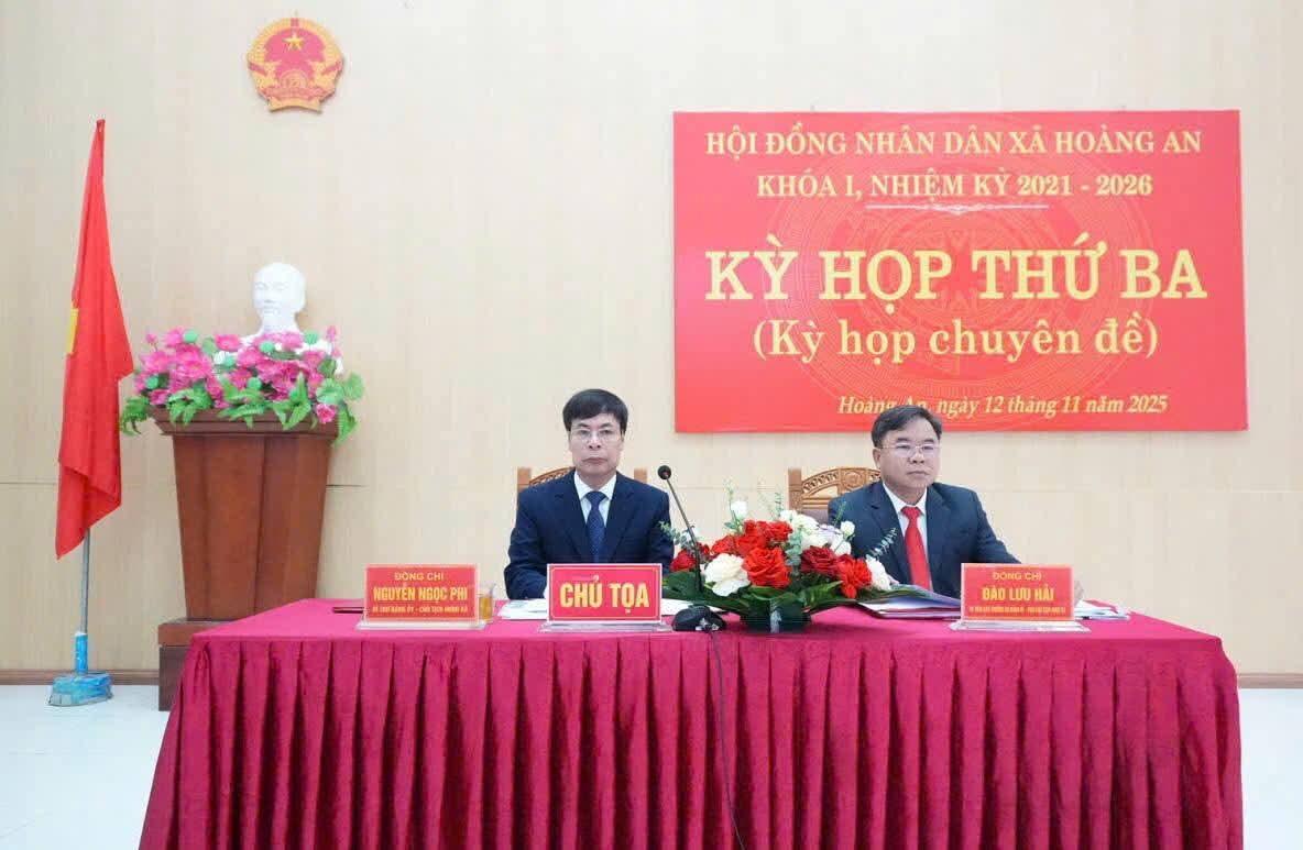 Hội đồng nhân dân xã Hoàng An khóa I, nhiệm kỳ 2021 - 2026 tổ chức kỳ họp thứ Ba (kỳ họp chuyên đề) nhằm xem xét, thảo luận và quyết định một số nội dung thuộc thẩm quyền. Đồng chí Nguyễn Ngọc Phi - Bí thư Đảng ủy, Chủ tịch HĐND xã; Đào Lưu Hải - Ủy viên BTV Đảng ủy, Phó Chủ tịch HĐND xã đồng chủ tọa kỳ họp.