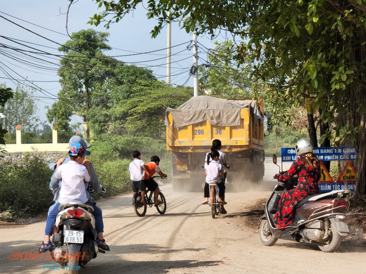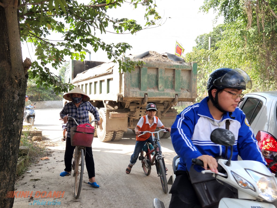 | Anh Hoàng Kỳ T., sống ở xã Vạn Điểm cho biết, tình trạng xe trọng tải lớn chở đất đã diễn ra khoảng 1 tháng nay. |