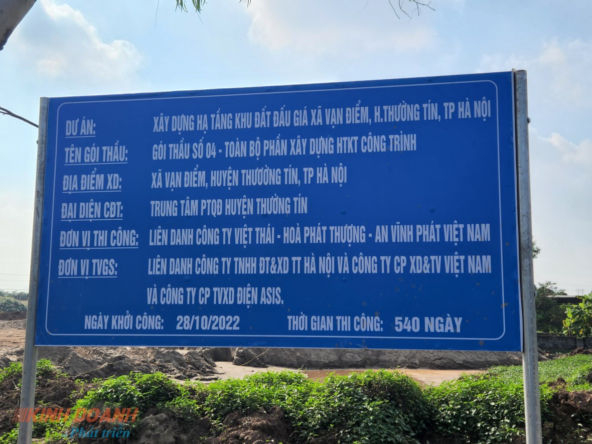 Được biết, Dự án xây dựng hạ tầng khu đất đấu giá xã Vạn Điểm do Trung tâm phát triển quỹ đất huyện Thường Tín làm chủ đầu tư. Đơn vị thi công là liên danh Công ty Việt Thái - Hoà Phát Thượng - An Vĩnh Phát Việt Nam.