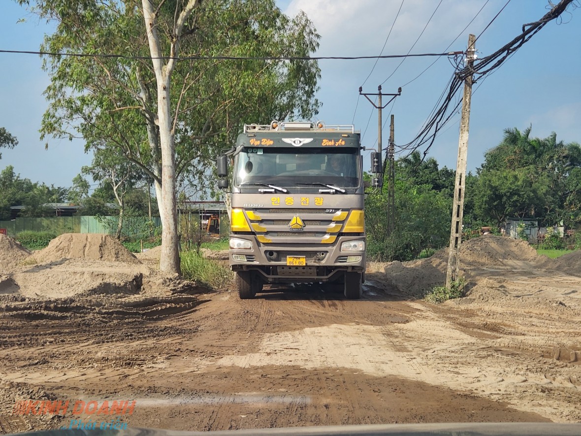 Trong 2 ngày 27 và 28/11, có mặt tại tuyến đường Thống Nhất và Đồng Xoài, PV ghi nhận ghi nhận rất nhiều ô tô tải loại "hổ vồ" 3-4 chân, xe đầu kéo cơi nới thành thùng thường xuyên ra vào công trường đang thi công của dự án Dự án xây dựng hạ tầng khu đất đấu giá xã Vạn Điểm.
