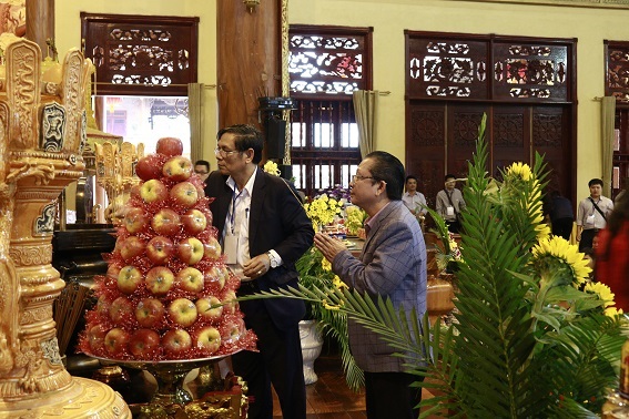 Đại diện Câu lạc bộ Các nhà công thương Việt Nam dâng hương tại chánh điện chùa Ba Vàng.